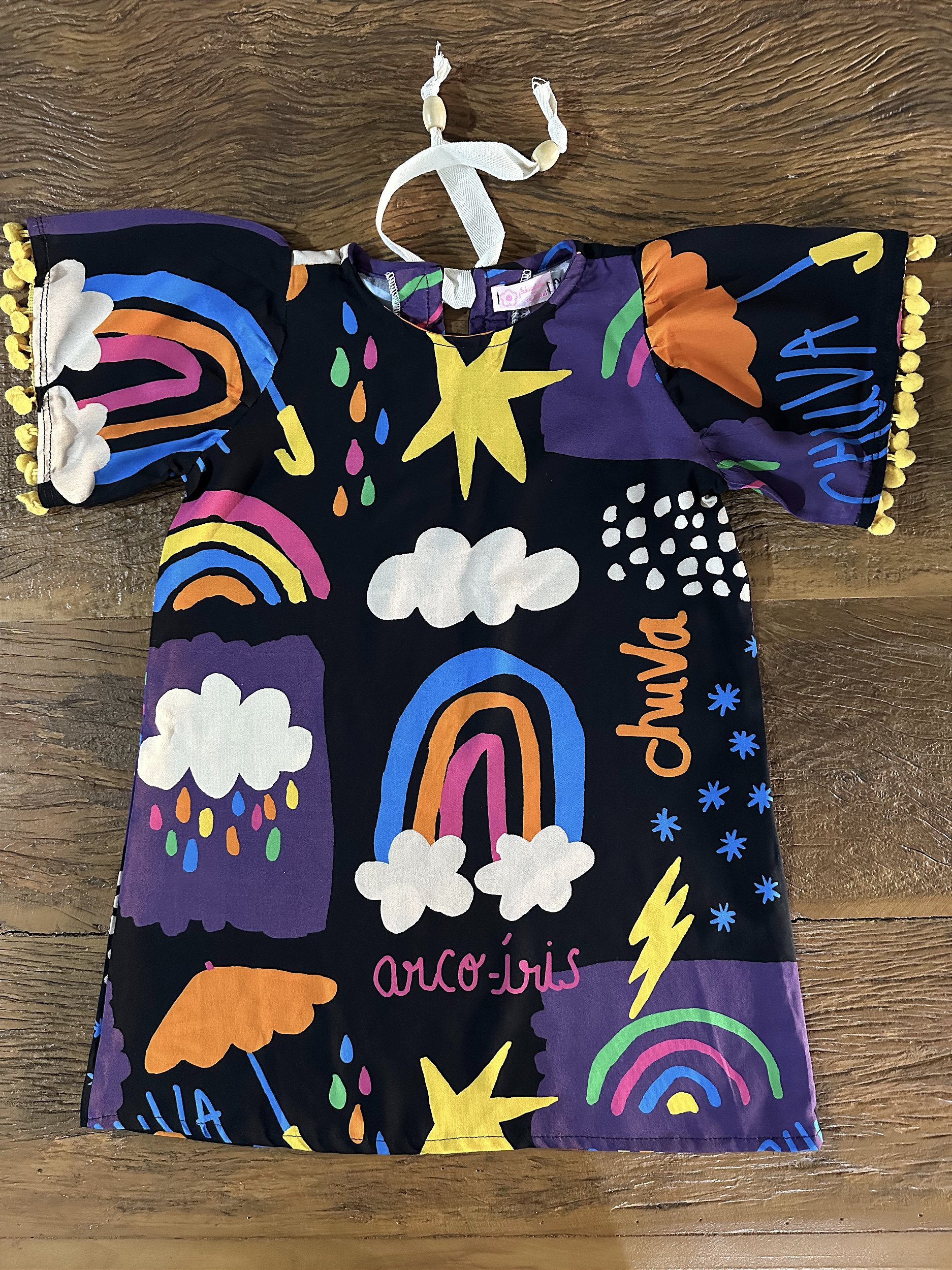 Compatibilidades: O Vestido Infantil Arco Íris combina perfeitamente com sapatilhas, tênis e acessórios coloridos, permitindo que cada criança crie seu próprio estilo.