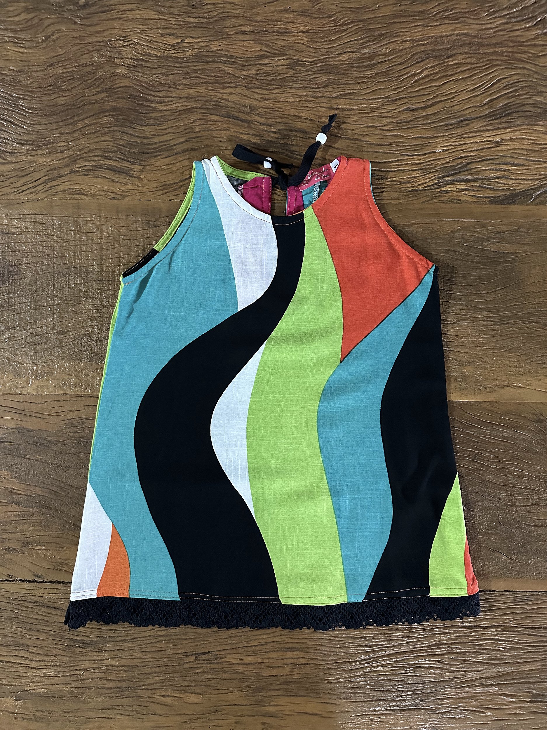 Com um design encantador, o vestido apresenta um padrão de ondas coloridas que traz um toque alegre e divertido, tornando-o perfeito para festas, passeios no parque ou até mesmo para o dia a dia. As cores vibrantes e a estampa lúdica são um convite à criatividade e à imaginação das crianças.