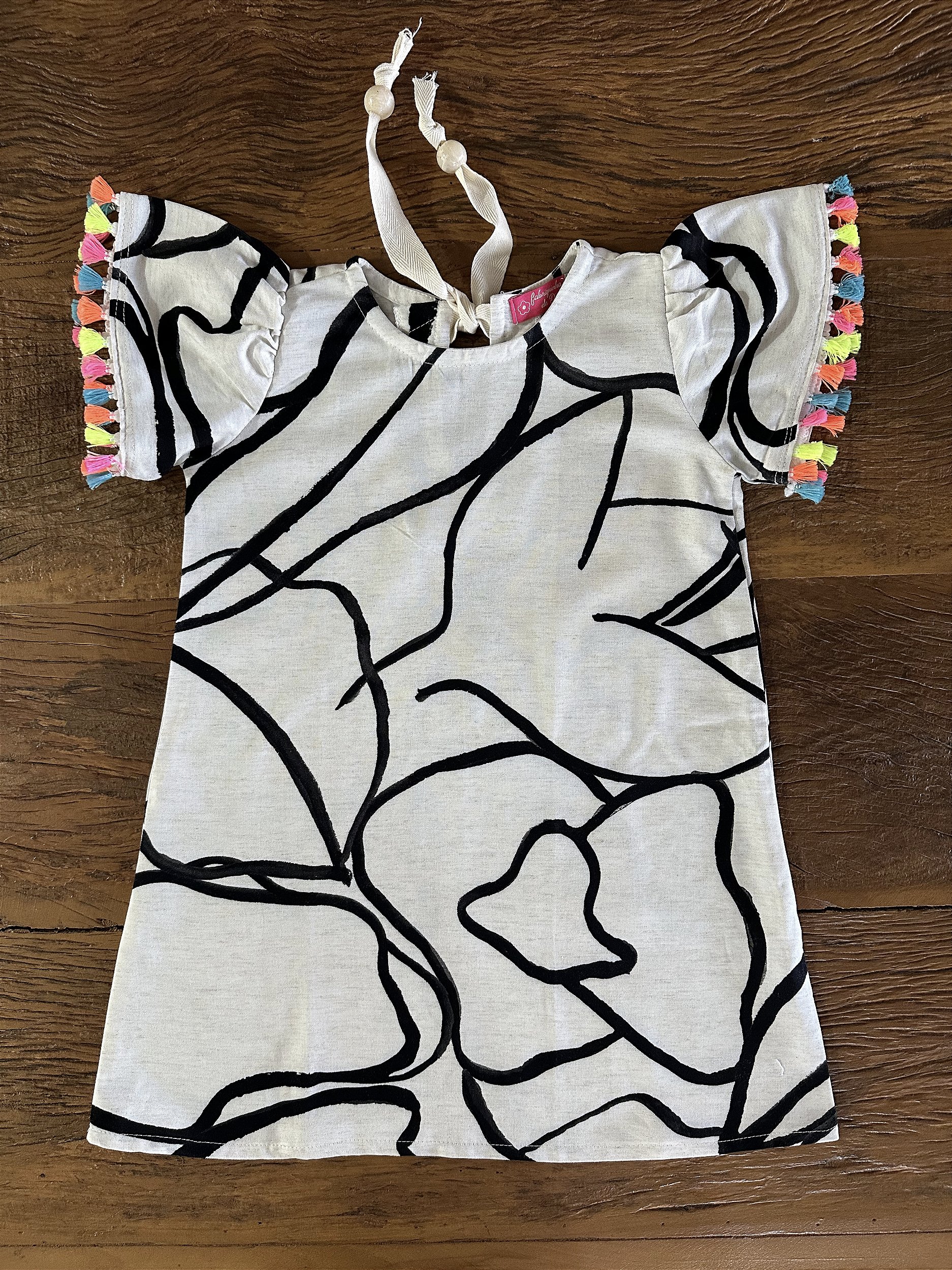 Além de ser uma peça essencial no guarda-roupa infantil, o Vestido Rabisco combina facilmente com sandálias, tênis e acessórios, proporcionando múltiplas opções de looks.